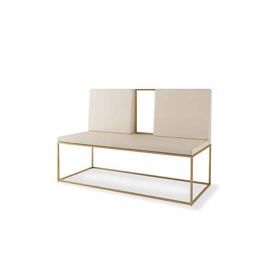 Flora Waiting est un canapé d’attente qui se compose d’un banc avec deux petits fauteuils en skaï blanc. La structure est constituée d’un cadre en acier peint en or. Enrichissez l’entrée de votre salon de coiffure avec ce banc exclusif.